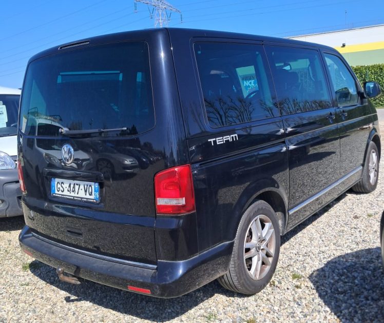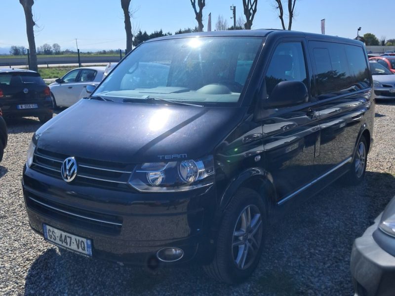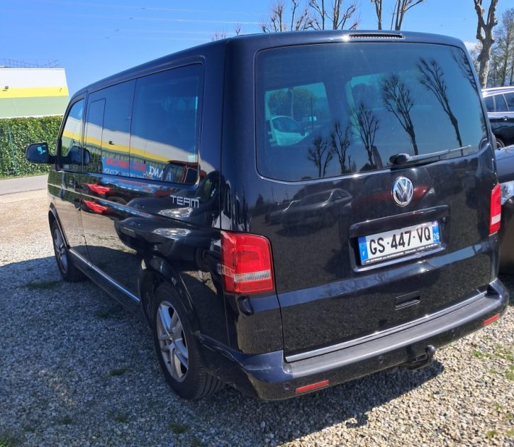 Volkswagen Transporter T5 phase 2 team édition 2.0 BiTDI 180 cv boîte automatique DSG 7 vitesses autoradio multimédia commande au volant régulateur limiteur vitre électrique jantes alu intérieur modulable nombre de rangement carnet d'entretien double de clé véhicule sein vendu réviser et garantie 19000 €