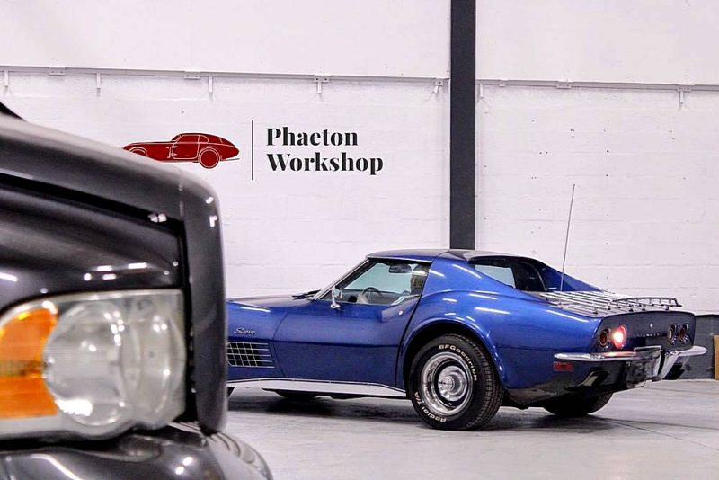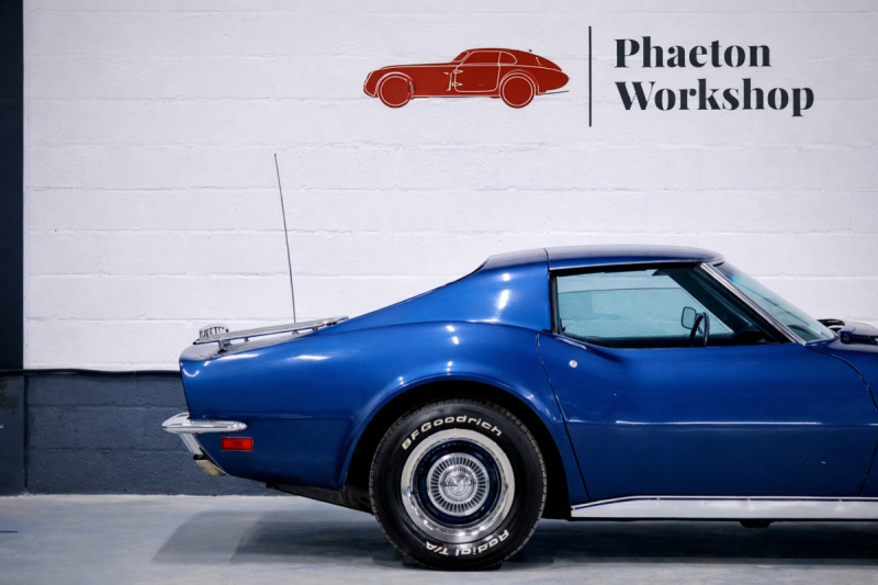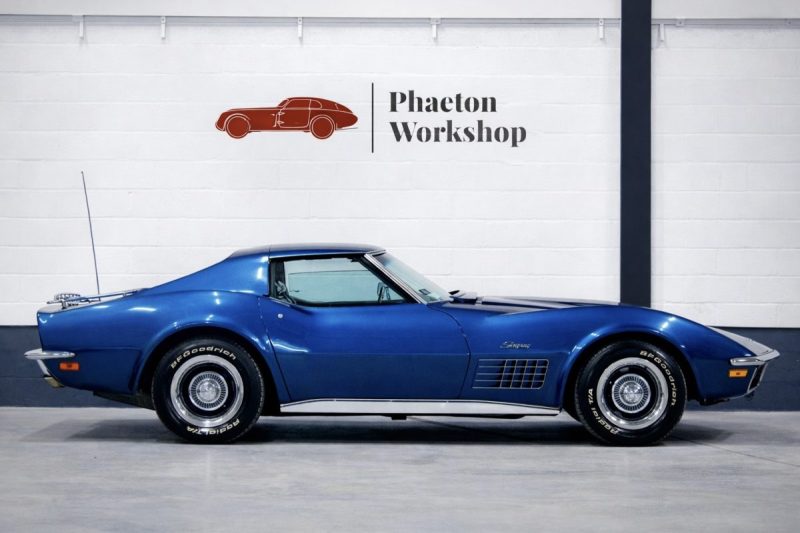 Phaéton Workshop a le plaisir de vous présenter cette superbe Chevrolet Corvette C3 454 ci Big Block de 1971, une icône absolue du muscle car américain dans sa configuration la plus désirable : boîte mécanique 4 rapports, moteur V8 7,4 L, et matching numbers.